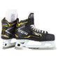 The Thermoplastic Polyurethane outsole on the skate not only reduces weight but increases stiffness for better energy transfer and maximum agility. The all new Supreme goal skates feature a goalie specific toe cap that provides increased protection through added thickness and stiffness. A shorter cut on the lateral side relieves pressure and allows a deeper stance, while the taller cut on the medial side maintains protection and support. The tongue also features an asymmetric shape to increase comfort while the goalie is in their stance. The asymmetric design on the new Bauer Supreme S190 Skates specifically enhances the goalie?s ability to move around the crease.